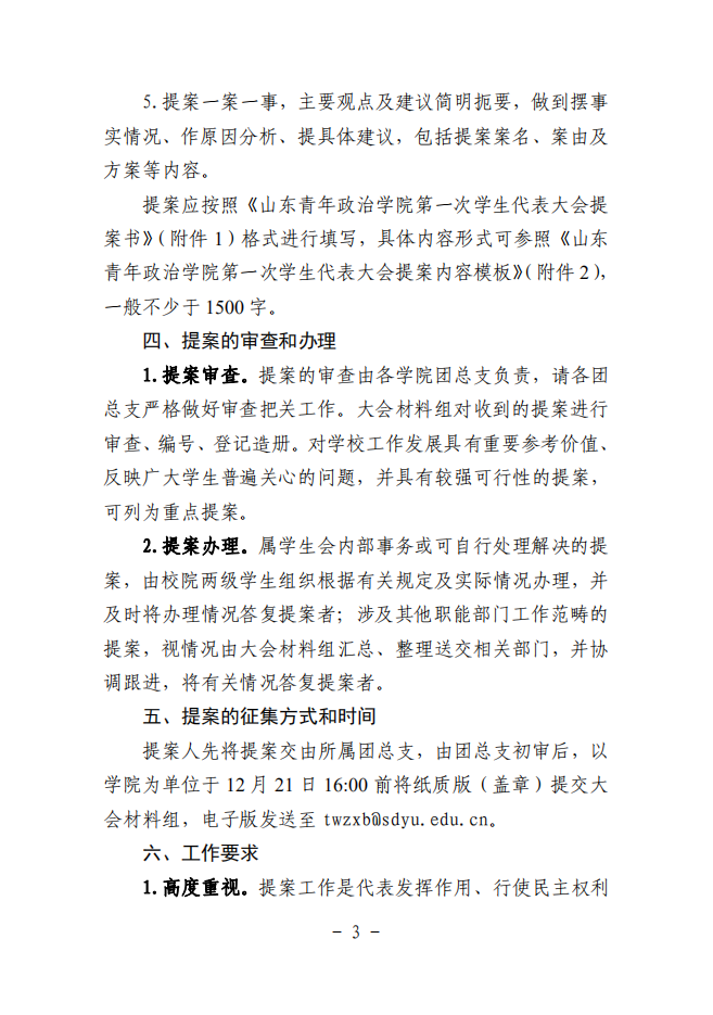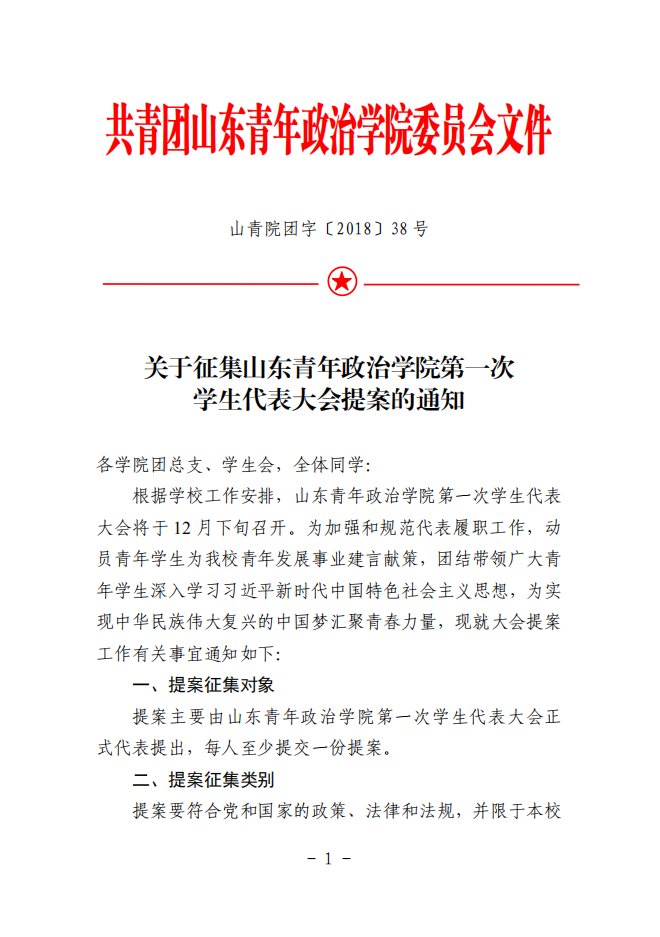 山青院团字〔2018〕38号关于征集山东青年政治学院第一次学生代表大会提案的通知