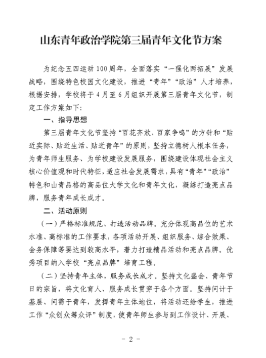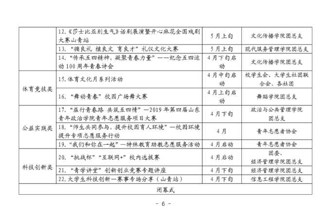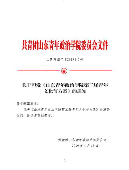 山青院团字〔2019〕6号关于印发《山东青年政治学院第三届青年文化节方案》的通知