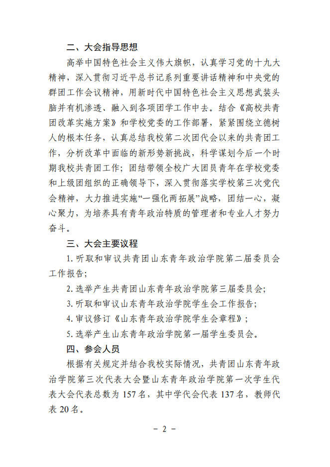 山青院团字〔2018〕36号关于召开共青团山东青年政治学院第三次代表大会暨山东青年政治学院第一次学生代表大会的通知