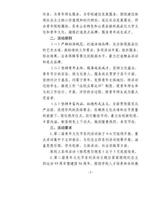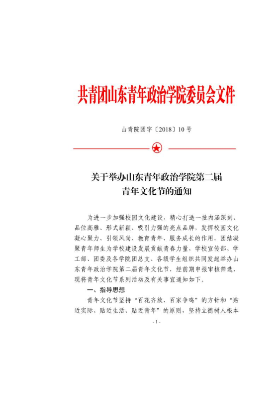 山青院团字〔2018〕10号--关于举办山东青年政治学院第二届青年文化节的通知