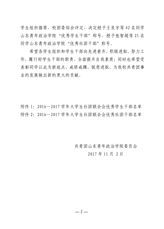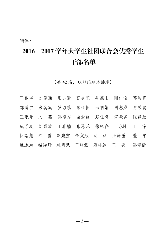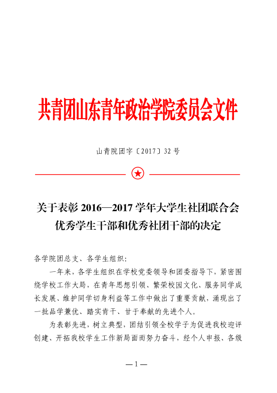 山青院团字〔2017〕32号--关于表彰2016—2017学年大学生社团联合会优秀学生干部和优秀社团干部的决定
