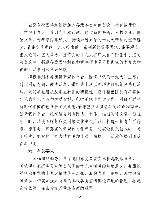 山青院团字〔2017〕35 号--关于组织全校团员青年认真学习宣传贯彻党的十九大精神的通知