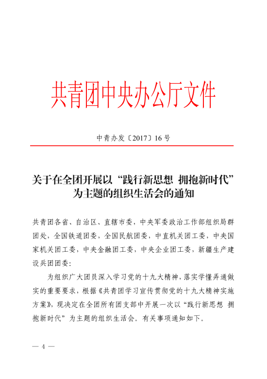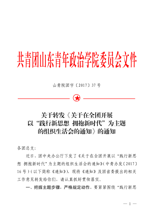 山青院团字〔2017〕37号--关于转发《关于在全团开展以“践行新思想 拥抱新时代”为主题的组织生活会的通知》的通知
