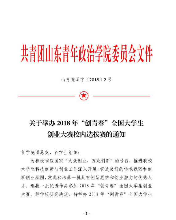 山青院团字〔2018〕2号--关于举办2018年“创青春”全国大学生创业大赛校内选拔赛的通知