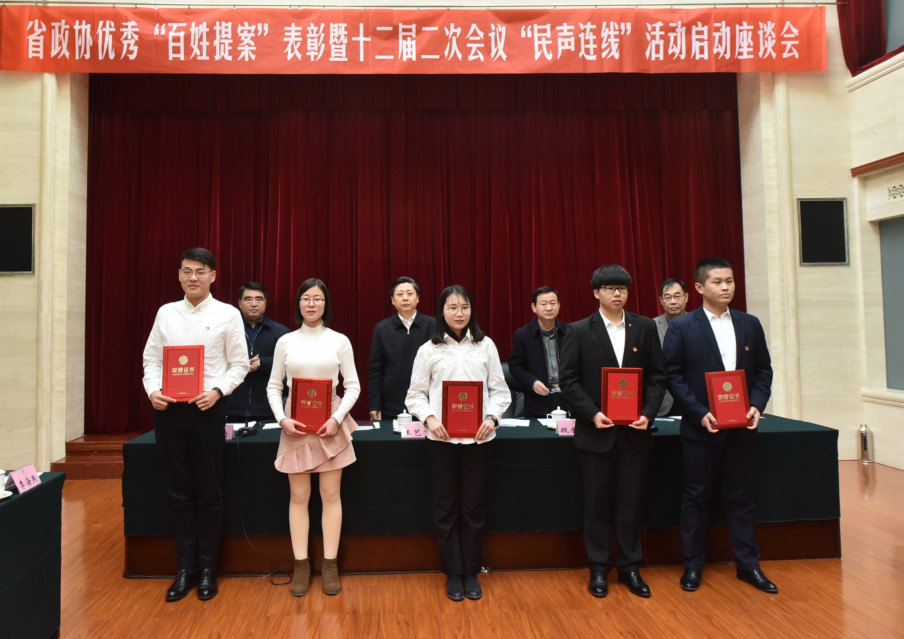 根据会议安排,省政协领导向优秀“百姓提案”获奖者颁奖,并介绍了2018年“民声连线”活动开展情况和省政协十二届二次会议“民声连线”活动安排。座谈主要围绕“百姓提案”落实转化情况进行,并就进一步做好新一年“民声连线”工作提出建议。在交流发言中孟祥熙说到,“省政协百姓提案征集活动帮助在校大学生实现了理论联系实际、校园联系社会、个人联系国家、制度联系群众,大学生通过参与体验政协提案的形成过程,极大地激发了大学生的爱国热情和主人翁意识。会后,一定带动更多同学了解政协、参与到更多的社会实践中,努力为我省发展贡献青春力量”。