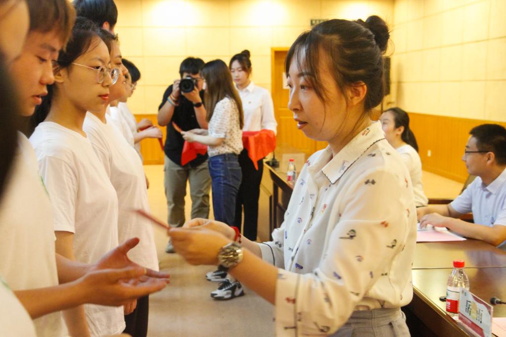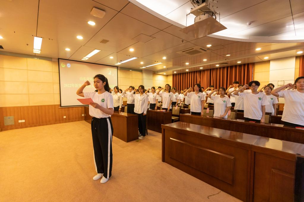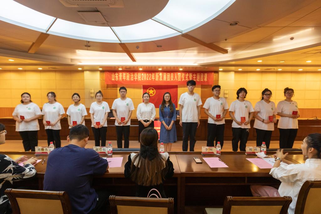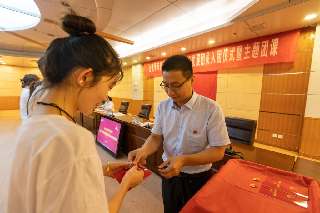 为深入贯彻落实习近平总书记在庆祝中国共产主义青年团成立100周年大会上的重要讲话精神,切实将先进青年吸收进团组织,使共青团真正成为团结教育青年的坚强堡垒,6月8日,学校举行新发展团员入团仪式,团委书记孟祥佳、团委志愿服务部副部长岳雨、各学院团总支负责人、辅导员,新发展团员、青年学生代表参加活动。活动由外国语学院团总支负责人王影影主持。