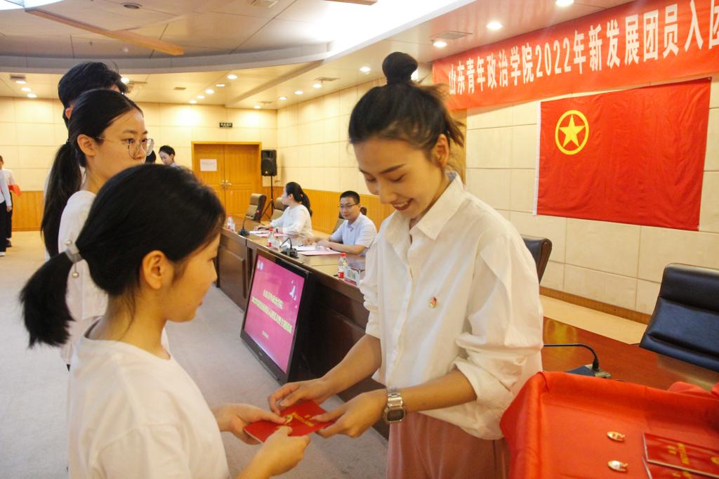 仪式在庄严的国歌声中拉开帷幕。岳雨宣读了《关于2022年上半年发展新团员的决定》,并向光荣加入中国共产主义青年团的团员青年表示祝贺。各学院团总支负责人、辅导员为新团员颁发团章、佩戴团徽。文化传播学院2020级播音与主持艺术专业石雨凡带领全体团员青年一同宣誓。入团介绍人代表、外国语学院2021级西班牙语专业张译方领学《中国共产主义青年团章程》中团员义务和权利条例。信息工程学院2018级信息管理与信息系统专业李浩然作为老团员代表发言,她提醒同学们要时刻牢记共青团员的责任与使命,在团组织的领导下找到奋进方向。外国语学院2021级英语(校企合作)专业刘翌晨代表新发展团员作表态发言,她表示,作为新发展团员应当坚定理想信念,传承和弘扬红色基因,为广大青年学生做好表率与榜样。