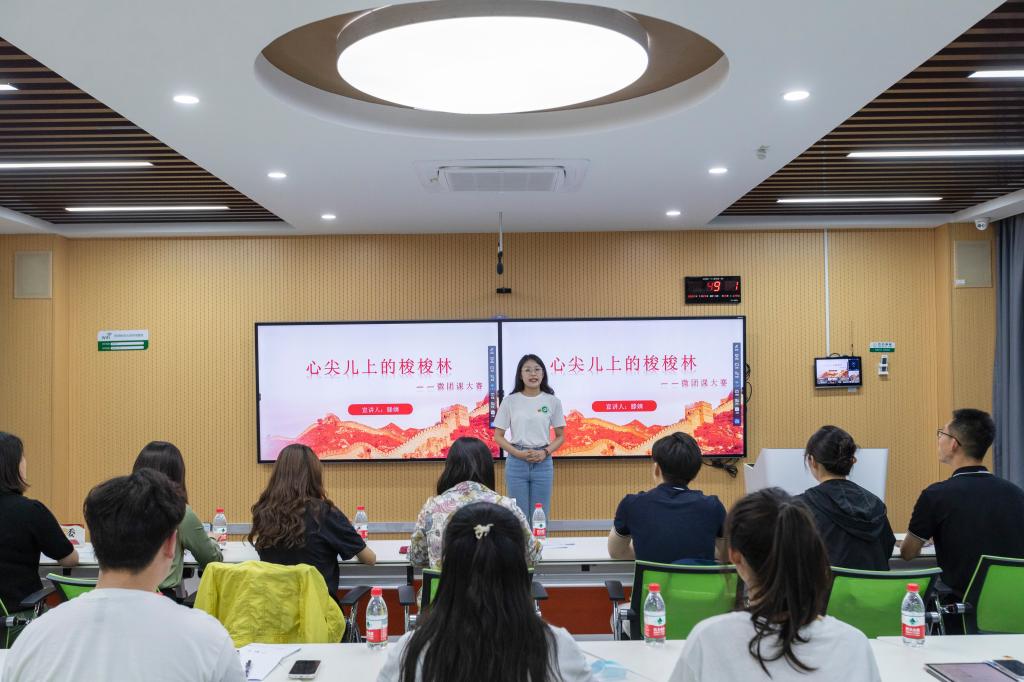 为深入学习贯彻习近平总书记在庆祝中国共产主义青年团成立100周年大会上的重要讲话精神,激励和引领广大青年坚定不移听党话、跟党走,5月26日,由团委主办、外国语学院承办的第四届“我的青春我的团”微团课大赛决赛在知行楼智慧教室举行。团委副书记任正实、外国语学院党委副书记崔师锐出席大赛,来自经济管理学院、文化传播学院、设计艺术学院、外国语学院的团干部、辅导员担任评委。