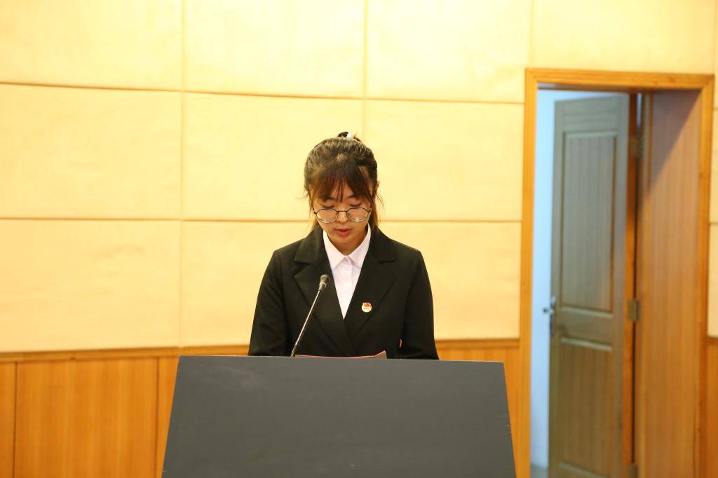 为深入学习贯彻党的十九届六中全会精神,进一步深入推进“学党史、强信念、跟党走”学习教育,落实全面从严治团要求,牢固树立新团员对共青团组织的荣誉感、归属感和认同感,我校于12月20日在学术会议厅举行2021年下半年新发展团员入团仪式。校团委副书记任正实、各学院团总支负责人、50名新发展团员和优秀老团员代表参加活动,活动由现代服务管理学院团总支书记窦玉明主持。