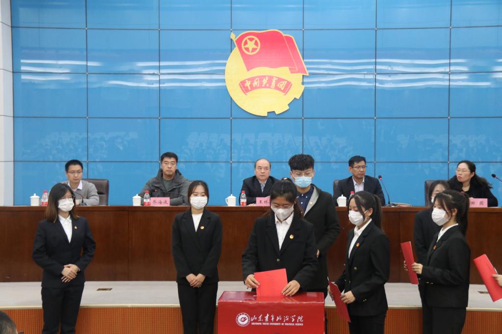 在全国上下学习宣传贯彻党的十九届六中全会精神之际,11月25日,山东青年政治学院第三次学生代表大会顺利召开。学校党委委员、副院长王林山,学生工作部部长石瑞宝,宣传部副部长乔海波,教务处副处长田园以及各学院团总支书记和全校207名优秀学生代表参加会议。会议由校团委书记孟祥佳主持。
