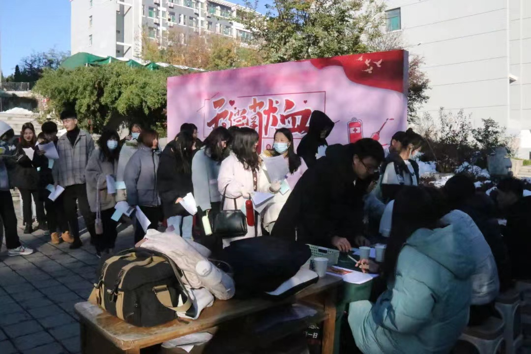 疫情防控期间,为确保各位师生的安全与健康,学校与山东省血液中心协作,对献血车进行了全方位消毒杀菌,在献血前进行填表、体检等准备工作,安排志愿者引导献血者有序排队,等待献血。在活动现场,气温的骤降抵挡不住无偿献血师生的热情,在献血车前排起一条“长龙”,在献血的队伍中,既有第一次献血的新面孔,也有多次献血的老面孔;既有正在跑步打卡的热血青年,也有抱着课本匆忙备考的考研学子;既有刚刚下课的教学老师,也有校园中物业保安等后勤保障人员。在献血的前一天济南迎来了初雪,各位献血者踏雪而来,车外冰雪在融化,车内爱心在流淌。每一位完成献血活动的师生的脸上都洋溢着满足与欢乐,医护人员与志愿者也耐心地嘱咐师生们献血的相关事项,确保献血工作顺利有序进行。