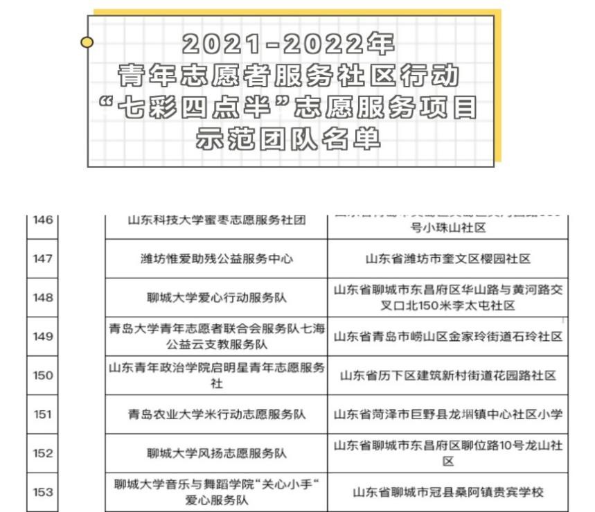 近日,中国青年志愿者协会秘书处公布了2021-2022年青年志愿服务社区行动“七彩四点半”志愿服务项目示范团队名单,我校启明星青年志愿服务社团成功入选。