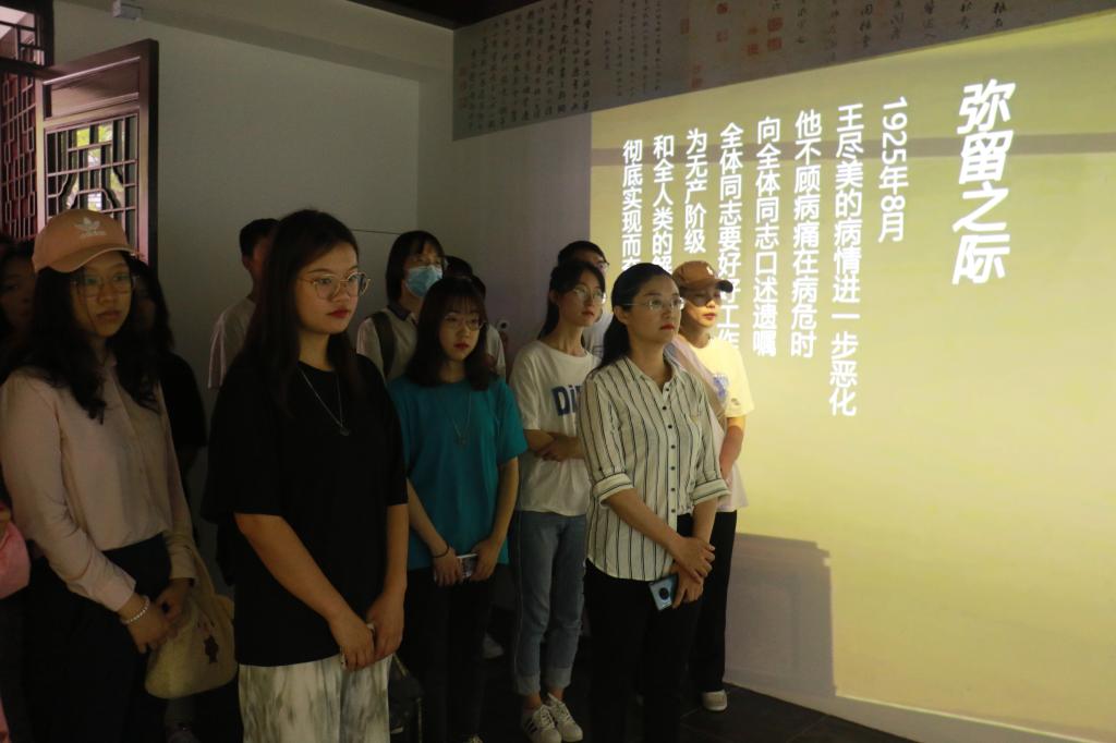 活动伊始,全体同学重温入团誓词。随后,大家跟随讲解员打卡十余个红色点位。通过新媒体网络技术进行微观景观体验,利用3D立面展示屏幕驻足重要历史瞬间,追寻英烈的红色足迹。通过网络在线音频聆听邓恩铭英勇就义、投身革命和热血青年刘谦初投笔从戎,最终英勇就义的红色故事;缅怀为新中国成立作出突出贡献的英雄模范王尽美;学习“海上黄继光”郭玉东奉献自我、保卫国家的大无畏精神;用心感受山东最早的女党员之一的王辩同志“毅然敢为天下先”、“执笔汗青忆革命”的烈士之路,始终践行着“学史明理、学史增信、学史崇德、学史力行”的信念。