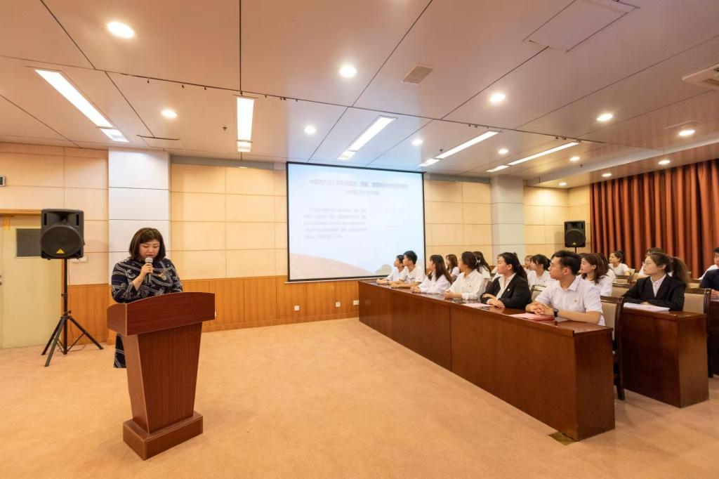 会上,外国语学院辅导员彭梦迪领学《中国共产主义青年团团旗、团徽、团歌制作使用管理规定》(中青发[2018]12号)。与会师生共同学习团旗、团徽、团歌的使用范围、使用规范、管理要求、监管责任、违反规定的处分,以及团旗、团徽的制法、标准及团歌的歌词、曲谱等。