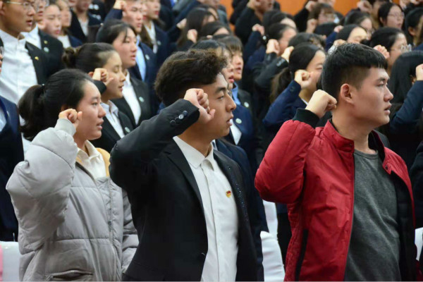 会上,全体学生干部进行了庄严宣誓:“坚定理想信念、服从学校大局;遵守组织章程、执行组织决议;恪守学生本分、摒弃庸俗习气;团结协作、甘于奉献;勇于创新,迎难而上;全心全意为同学服务;做师生友谊的桥梁,做同学心中的榜样;努力成为政治坚定、德才兼备;素质全面、堪当重任的学生骨干;为学校建设发展贡献青春力量!”