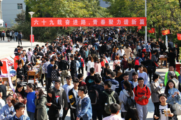 10月18日校庆当天,我校“六十九载奋进路,青春聚力谱新篇”2018学生社团文化展暨纳新活动在校园隆重开幕,89个学生社团通过社团文化展示、创意快闪、展板留言等方式引领山青学子以朝气蓬勃的精神风貌向山青的六十九岁生日献礼。