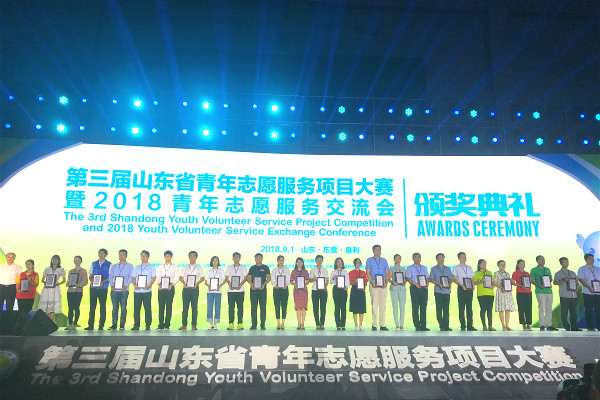 2018年8月29日至9月1日,第三届山东省青年志愿服务项目大赛暨2018青年志愿服务交流会在东营市垦利区举行。团中央青年志愿者行动指导中心主任张朝晖,团省委书记陈必昌、副书记李子元,东营市副市长刘美华等出席了本次大赛。我校喜获一项金奖、一项银奖和一项铜奖。其中,由政治与公共管理学院乔海波指导的《“爱晚”城市锦囊济漂老年人城市融入服务》项目、《“远离毒品,尽享阳光”青少年禁毒普法宣传教育》项目分获大赛金奖、银奖,由设计艺术学院张冰指导的《青年艺术帮——驻济高校唯一社区文化艺术帮扶平台》项目荣获铜奖。