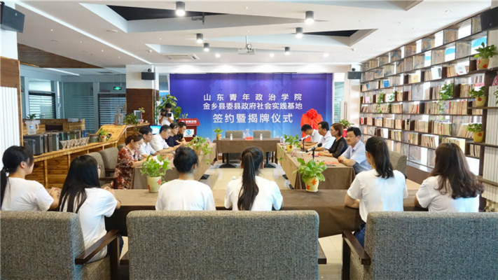 座谈会上,双方就交流平台搭建、合作项目深化、青年志愿服务、大学生社会实践等内容进行了沟通交流。高峰详细询问了学生们参与社会实践的工作情况,对参加社会实践学生的工作态度和优异表现给予了充分肯定,并代表学校对金乡县政府、共青团金乡县委为我校大学生提供社会实践平台表示感谢,希望双方今后在社会实践、品牌项目、文化建设和团干部培训等方面能有更多深入的校地合作,共同助力人才素质教育与区域经济发展。金乡县对我校社会实践团队的辛勤付出表示感谢,并高度评价了大家的实践表现。随后,校团委书记范红伟与金乡县智慧产业园总经理王福星签署合作协议,会计学院党总支书记石瑞宝与金乡县委副书记张新广共同为山东青年政治学院社会实践基地揭牌,标志着我校于金乡县在校地共建、校企合作方面迈上新台阶。