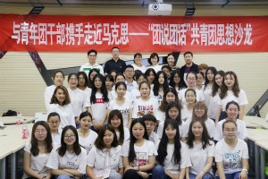 团北京市丰台区委书记杨勇、团广西壮族自治区藤县委书记程飞、团辽宁省朝阳市双塔区委书记陈天虹、团安徽省铜陵市义安区委书记章彩云走进外国语学院“与青年团干部携手走近马克思”——“团说团话”共青团思想沙龙。学生慷慨激昂地朗诵《在马克思墓前的讲话》、认真解读《德意志意识形态》和《共产党宣言》、由开展寒暑期社会实践的意义探讨到开展真理标准问题的讨论,赢得嘉宾频频赞赏。团北京市丰台区委书记杨勇通过讲述陈道望在翻译时误吃墨水的故事勉励大家理想信念是精神之“钙”,在探索真理的路上,每一种经历都是甜蜜的收获。