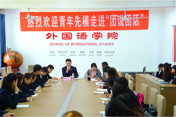 “山东青年五四奖章”获得者韩绍广走进外国语学院团支部,分享了工作以来发生在我们周围的未成年人犯罪案例,用真实的事例和鲜活的语言为广大青年学生进行了一场生动的法制教育,强调当代大学生一定要学会自我保护,正视社会现状和存在的压力,做一名有担当、有作为的新时代青年。