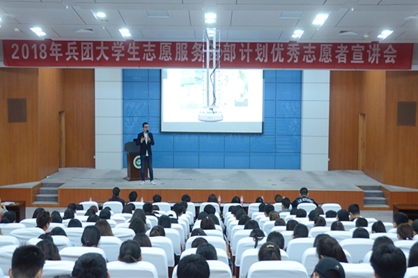 4月23日下午,2018年新疆生产建设兵团大学生志愿服务西部计划优秀志愿者宣讲会在我校西报告厅举行。兵团团委志工部负责人王璐、4名西部计划优秀志愿者就西部计划政策、服务内容、服务经历等内容进行了宣讲和经验分享。学校党委副书记高峰会见了王璐一行,省志愿者行动指导中心、学校团委负责同志出席宣讲会。