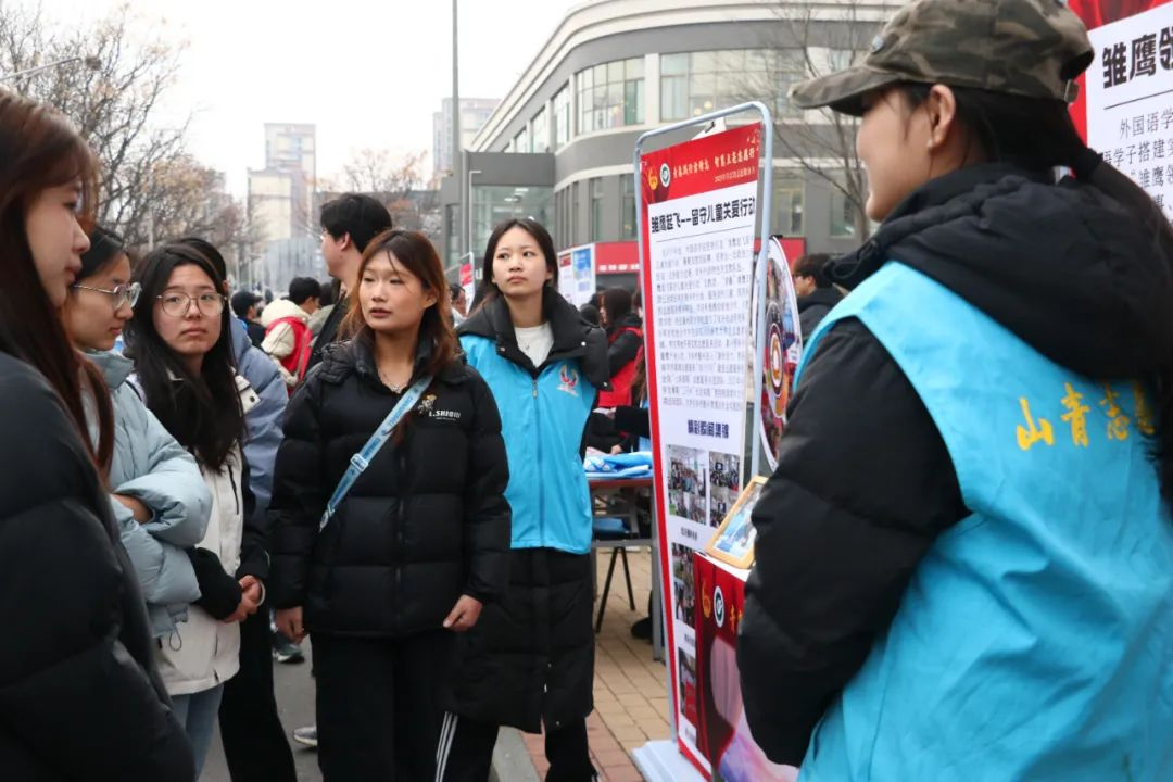 与此同时,学校“青春志愿赶大集”集市志愿服务在南北苑餐厅两侧拉开帷幕。全校12个学院展示了本学院志愿服务特色,开展了急诊救护、非遗剪纸、反诈宣传等丰富多彩的志愿服务项目。