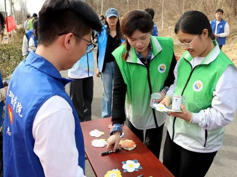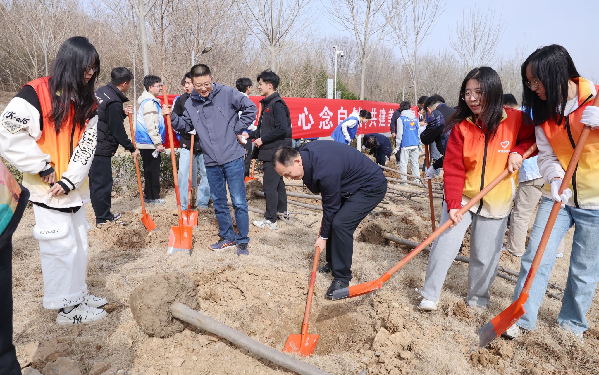 活动间隙,校领导与师生志愿者们亲切攀谈,并指出植树不仅是种下一棵树苗,更是种下希望和责任,希望同学们争做绿色理念的传播者、生态文明的实践者、美丽中国的建设者,身体力行、真抓实干,守护好绿色家园。信息工程学院学生赵玉曦表示,“参与植树节活动让我感受到‘种下一棵树,守护一片绿’的责任与意义。亲手培土浇水,不仅是对自然的回馈,更是对未来的承诺。用心种下一棵树,用行动守护一片林。愿我们的行动能为美丽山青增添一抹新绿。”