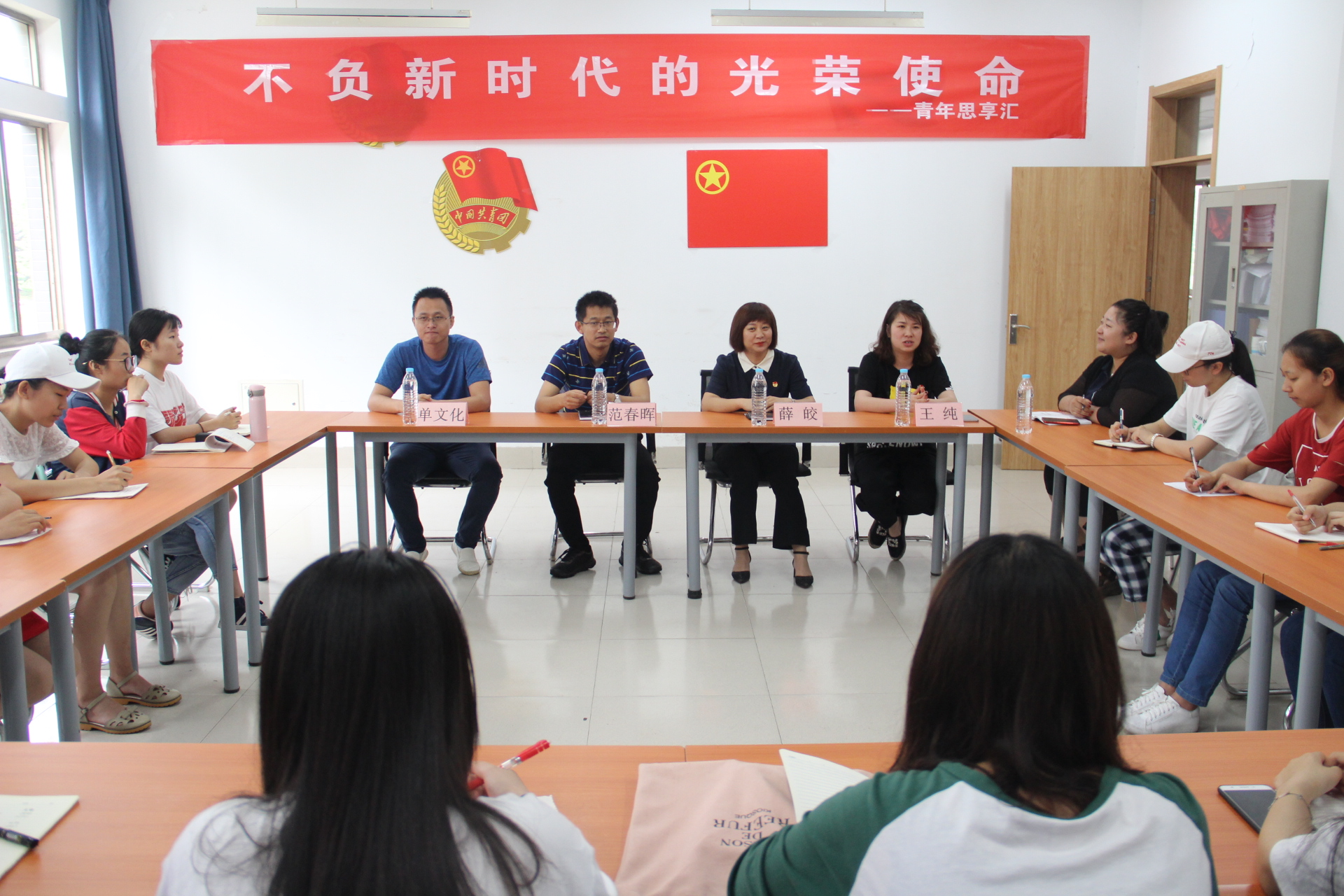 活动中,单文化结合基层经历谈到学习党的十九大精神的重要性,建议青年人要先学一步、学深一层,抓紧时间学习、如饥似渴学习、带着感情学习,在学习中理解和把握党的十九大精神所蕴含的理论逻辑、历史逻辑、实践逻辑,不断提高自身认识水平,形成真挚的情感认同、深刻的思想认同、持久的信仰认同。范春晖从青年人要培养创业意识和创新创业能力入手,向在场的青年团员提出要求:要弘扬“红船精神”、西柏坡精神和塞罕坝精神,不怕吃苦,不畏艰难,大胆创新,积极创业,在新时代展现新气象、争取新作为。“跳蚤是什么?“糠是什么?”当薛皎问到这些问题的时候,大家陷入了沉思。薛皎说:“青年人应该走出象牙塔,接地气,体悟基层的真实生活,这是青年人应该有志于此的事情。当你们走进乡间,走向田野,你会发现那里的历史,有文脉,有故事,你可以观察这里的社会模式,感受这里老百姓的心理和生活,探究这里的扶贫道路,意义无穷”。王纯说:“本次思享汇活动意义非凡,作为基层团干部我们只有走进团员青年,才能知道他们想听什么、爱听什么、能听进什么,才能防止形式主义、提高宣传的实效性,才能真正提升团干部自身做群众工作的本领”。活动最后,2017级审计专业的张一伟说:“这是一场精彩的思想上的基层实践体验,今年暑假我要和我们团支部的青年团队组建一支社会实践队伍,亲身体验一下真实的田间地头,纵横的阡陌小道,感受最真实的‘向往的生活’”。