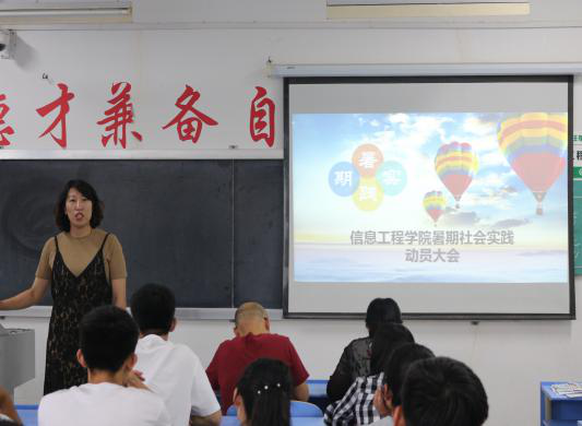 为充分发挥社会实践在人才培养和社会服务体系的重要作用,为学校本科评估做出青春贡献。近日,信息工程学院于D303召开2018年暑期社会实践动员大会。党总支副书记张婷婷,辅导员赵可心、牛传允、曲蓉蓉及46支暑期社会实践团队负责人参加了此次动员大会。