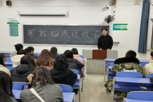 在热烈的讨论中,同学们交流分享了自己的假期生活,谈了自己在假期中的感受和心得,分享自己假期读过的书并且简单介绍书籍的内容和自己的收获,同时确立了下学期的目标。有的同学在寒假中学车、旅行、学习专业知识、参与寒假社会实践等等。部分同学利用寒假去旅行,来开阔视野,了解不同的人文风俗。对比放假前要发奋图强的决心和放假后的日常,部分同学感叹计划赶不上变化,新学期仍需要提高自己的自控能力。有的同学在这个寒假里去翻译公司工作实习,他们表示,作为一名学习外语的学生,同时也感受到了本专业的优势,不过要想有更好的发展,必须在大学努力学习,这样在将来的竞争中,获胜的机会会更大。