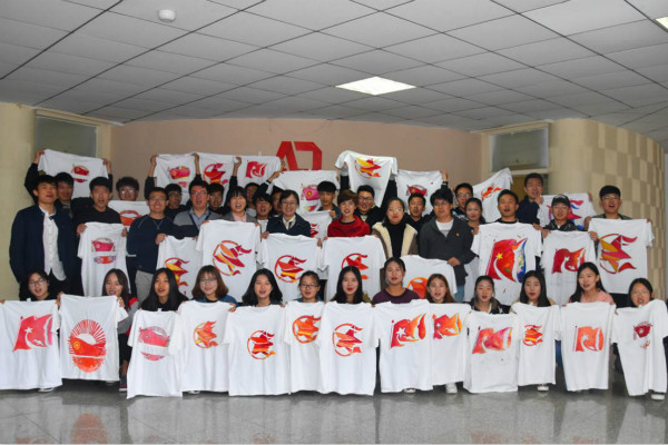 同学们纷纷表示,要把握大学时光,树立远大理想,努力成为新时代的有为青年。讨论结束后,同学们还大胆想象,将自己对祖国的热爱与专业特色相融合,设计了展现了当代青年学生爱国情怀的T恤衫。
