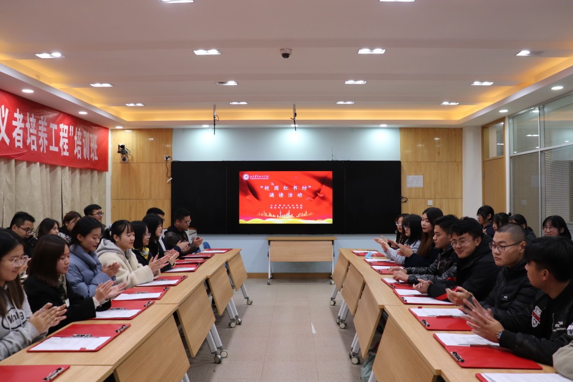 “天高云淡,望断南飞雁,不到长城非好汉,屈指行程二万……”11月20日下午,2020年政治与公共管理学院青年马克思主义者培养工程培训班的同学们朝气蓬勃的读书声中,诵读红色经典-校园红书坊活动在社会工作实验室拉开帷幕。