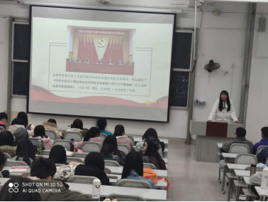 在团支书的组织引导下,各个班级通过主题团日活动、微团课、学习交流会等形式围绕我国发展面临的形势、“十四五”时期经济社会发展主要目标和2035年远景目标、坚持党的全面领导的明确要求等内容学习有关精神。