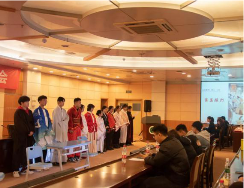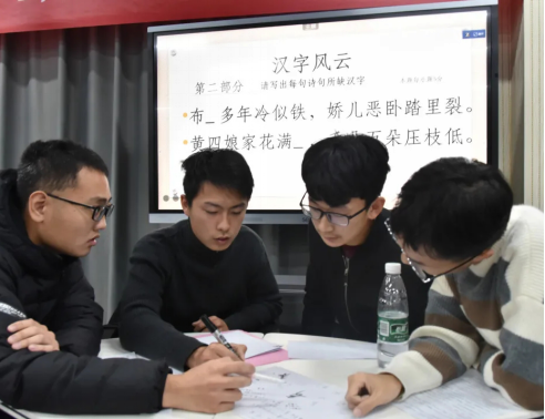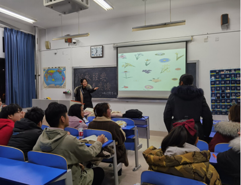 第二部分开展诗词竞赛,通过五个环节进行。“追本溯源”需要选手在一分钟内答出所给诗句的作者,“汉字风云”让选手一分钟答出诗句空缺汉字,“破镜重圆”参赛选手以小组为单位补充诗句,“飞花令”通过评委抽签出题,小组选手答出符合题目意境的诗句,“诵读经典”通过抽签诵读美文并解释。通过以上环节丰富了同学们的古典诗词知识。第三部分以班级为单位组织学生对经典书目进行情节演绎,进行角色扮演,重现经典,以此来重温经典,激发同学们阅读兴趣。