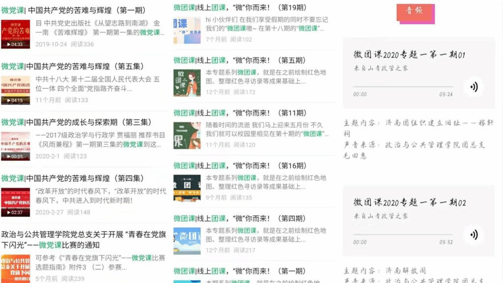 为贯彻学院党团共建,党建带团建工作思路,学院将以“讲四史,做时代新人”为主题,录制一批“四史”微党课、微团课。其中,微党课部分由师生党员录制,主要学习党史内容,微团课部分由团员完成录制,主要学习新中国史、改革开放史和社会主义发展史。让有信仰的人讲历史,利用新媒体平台,发挥党课、团课的宣传作用,传递四史教育的“新”声音。