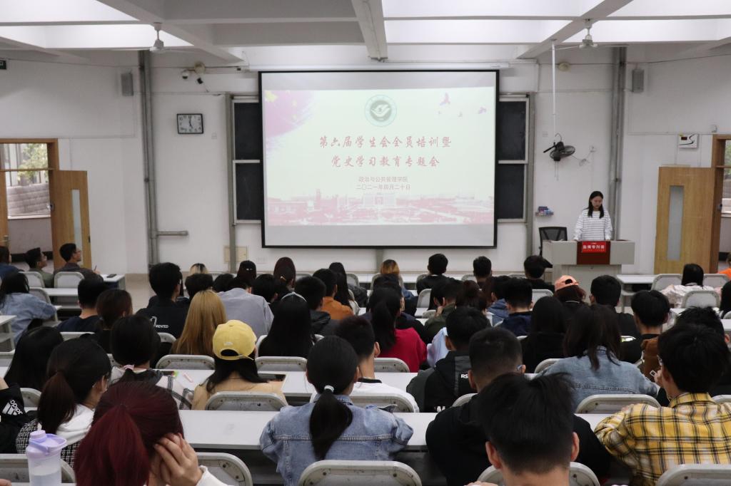 为贯彻落实从严治会要求,加强学生会日常教育管理,强化服务意识,创新工作思维,严管组织骨干,不断提高工作胜任力、凝聚力、战斗力。4月20日下午,政治与公共管理学院学生会于笃行楼101室召开全员培训暨党史学习教育专题会,会议由学院学生会主席倪田力和秘书处李柠辰主讲。