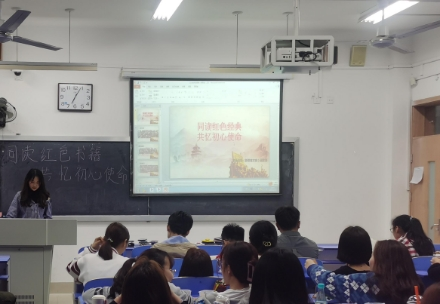各班在团支书的带领下,围绕《中国共产党历史》、《红岩》、《青春之歌》、《铁道游击队》等红色经典名著,以读书朗诵会、分享会等多种形式引领青年团员从党史中把握社会历史发展规律,坚定社会主义必胜信念,汲取奋发前行的磅礴力量。