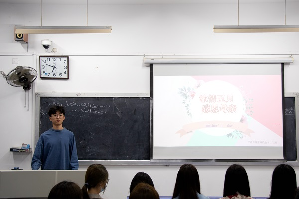 整个活动分为三个环节,第一环节由团支书在班级里与同学们分享有关母亲节的故事,传达了此次活动的主题和内容;活动第二个环节,全班同学共同观看了《你好,李焕英》,激发同学们主动去了解母亲的青春;活动第三个环节,团支书通过挑选了一些有代表性的祝福方式分享给大家,呼吁同学们大声地说出自己对母亲的爱与祝福。