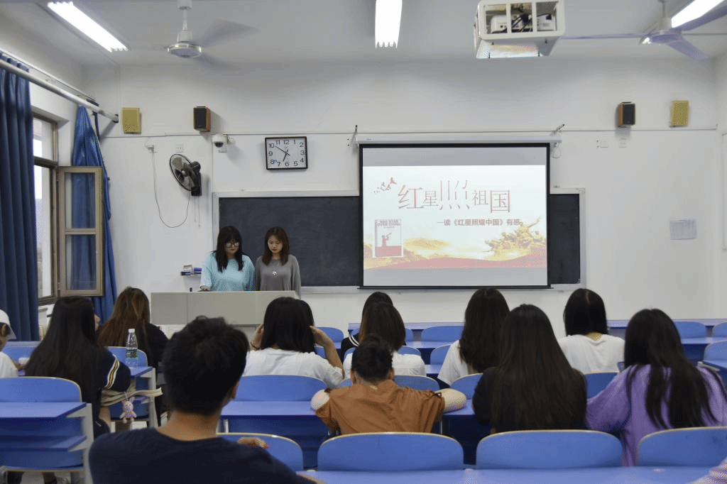 活动由各班团支书主持,参与活动的小组通过讲解PPT、朗诵等形式上台展示小组成果,分享了自己阅读红色经典读物后的感悟和体会,用铿锵有力的声音表达自己对党的热爱。
