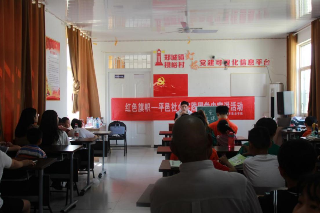 作为新时代的大学生,在党的光辉中成长起来的我们,一直沐浴在党营建的和谐稳定的社会环境中成长,尤其要在这个时代担负起我们作为社会主义接班人的责任。此次“红色旗帜”社会实践团走进郑城镇桃峪村,同样也为少年儿童普及中国共产党的历史,通过党史宣讲,为儿童打下尊党、爱党的基础,具有重大意义。