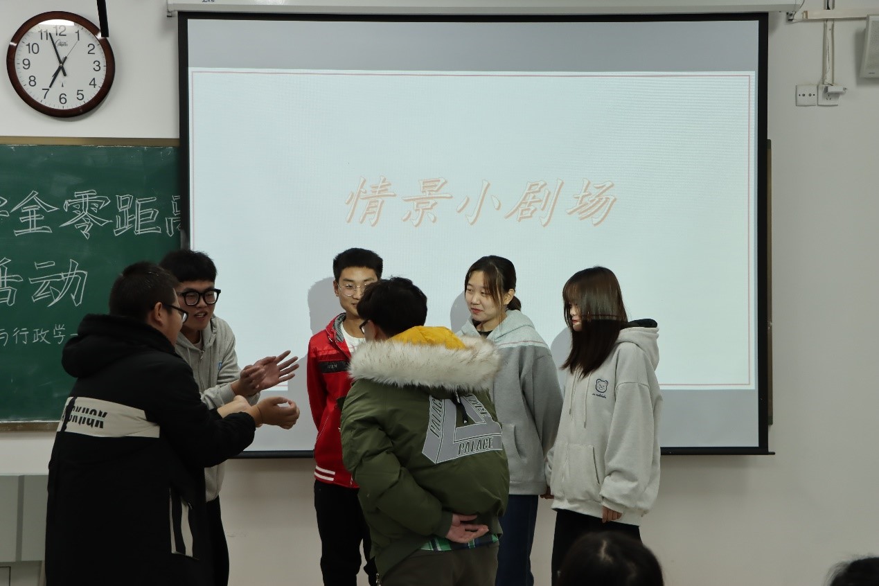2021级政治学与行政学一班团支书胡雅茹采用理论知识传授与视频教学相结合的方式向团员青年们讲述防诈骗的知识,团员青年们认真聆听同学有关”防诈骗”理论知识的讲解并积极回答问题。随后,班级以分组形式进行了防诈骗小情景剧现时表演,展示了仿冒身份类、购物类、活动类等诈骗情景,以诙谐幽默的台词对话和生动有趣的表演互动形象的演绎了遇骗、识骗、治骗、防骗的过程,鼓励同学们提高警惕意识,使用正确的维权方法维护自身合法权益。