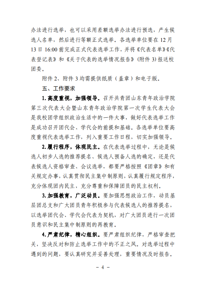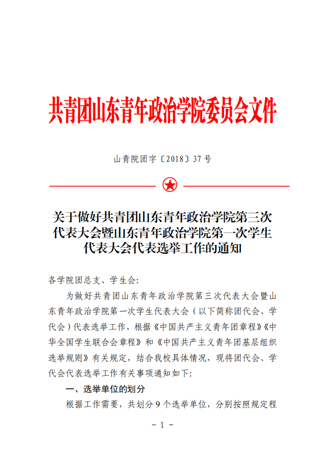 关于做好共青团山东青年政治学院第三次代表大会暨山东青年政治学院第一次学生代表大会代表选举工作的通知