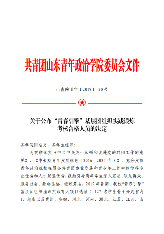 关于公布“青春引擎”基层团组织实践锻炼考核合格人员的决定