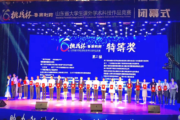 近日,由共青团山东省委、山东省科学技术协会、山东省教育厅(省委教育工委)、山东省科学技术厅、山东省社会科学院、山东省学生联合会主办,齐鲁工业大学(山东省科学院)承办的第十六届“挑战杯”山东省大学生课外学术科技作品竞赛终审决赛落下帷幕。我校取得该项赛事历史性突破,首次获得省级特等奖1项,另获省级一等奖1项,学校获得优秀组织奖。