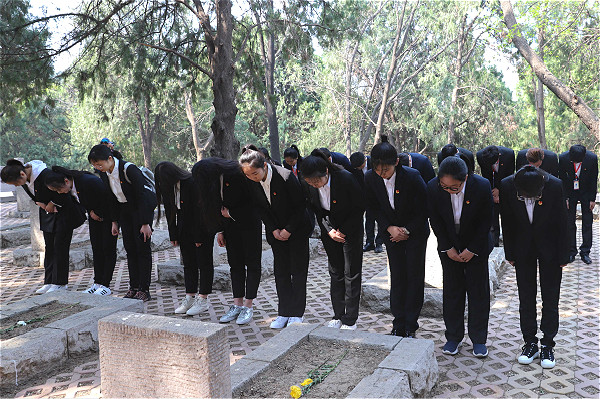 清明节当天,青年领导力专题培训班学员代表与国旗护卫队、校学生会等学生组织共计50余人,赴济南英雄山烈士陵园开展了“缅怀革命先烈 弘扬民族精神”主题教育活动。悼念广场上,学员们怀着对革命先烈的崇敬之情,为争取民族独立和人民解放而英勇捐躯的先烈们敬献花圈,并邀请现场参与祭扫的抗战老兵讲授“纪念五四运动100周年”主题微团课,用实际行动缅怀先烈,告慰为祖国和人民献身的忠魂。文化传播学院学员刘波涛表示,“逝者安息,生者图强。对英烈最好的纪念,就是将他们用生命捍卫的事业进行到底。作为青年学生,我们更要坚定以习近平新时代中国特色社会主义思想为指导,把对英雄的哀思转化为工作学习的强大动力,以更加奋发有为的精神状态助力学校事业快速发展、促进个人全面成长成才。”