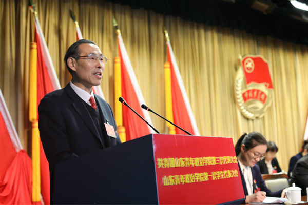 党委书记鹿林代表学校党委充分肯定了本届团委和各级团学组织的工作。他指出,山青院的团学组织有思路、有创新、有干劲、有成效,是党的有力助手和可靠后备军,是广大团员青年成长成才的有力依靠;山青院的青年学生有理想、有信念、有担当、有能力,是值得信赖、堪当重任、充满希望的一代!并借助大会向全校共青团组织和广大团员青年提出了三点期望:一是要守住初心,坚定理想信念,矢志不渝地传承山青院青年政治人才培养的基因,在伟大梦想的实践中贡献自己的力量;二是要只争朝夕,发奋成长成才,在认识世界和认识自我的过程中,找到更好贡献于伟大复兴的价值点;三是要师生共勉,勇担时代重任,加速推进人才培养能力建设,使团学组织在加速壮大学校发展实力的进程中打出自己的优势。