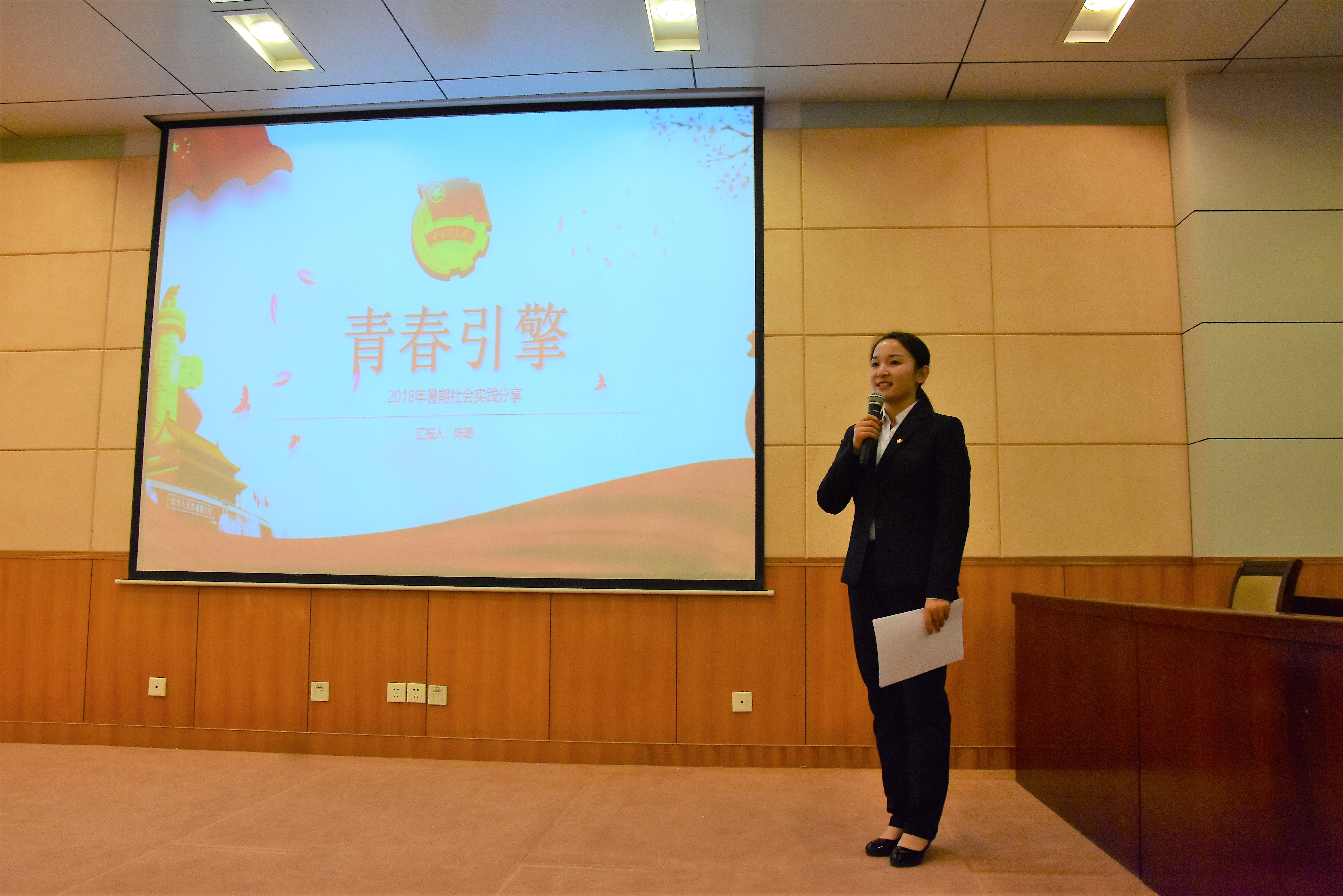 青年教师左宝宝、姜潇硕分别作为优秀组织奖代表、优秀指导教师代表发言,从项目筹备、实施跟进、成果展现、推广应用等方面交流了指导经验和心得体会。知行小队、“麦田守望者”支教队、“国旗下的牵手”共青团、少先队国旗护卫队共建实践团和“青春引擎”基层团组织助力团作为优秀团队代表,就各自的实践成果进行了汇报展示。2018级新生代表在观摩展示汇报后纷纷表示,今后要积极参加社会实践,向优秀榜样看齐,坚持以知促行,做到知行合一,在实践中保有理想、增长才干、彰显价值。