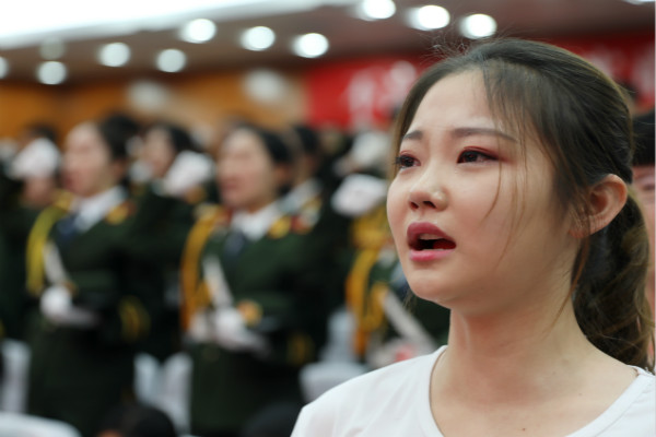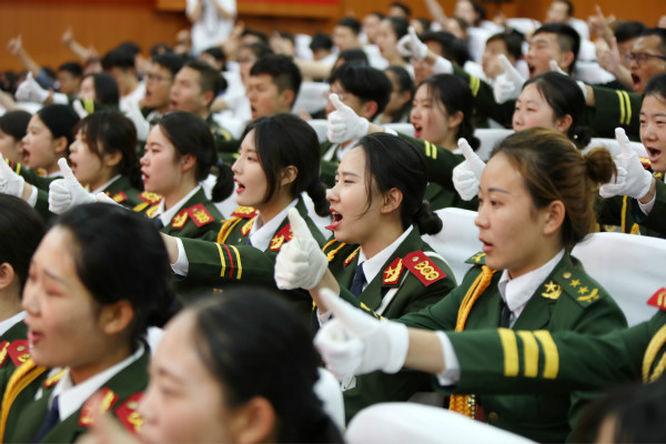 随后,学校第九届、第十届国旗护卫队的点名、交旗仪式将整场活动的气氛推向了高潮。整齐的步伐、标准的军礼、高亢的口号,更新换代的传承感和强烈的仪式感深深震撼了在场的每一位青年朋友。