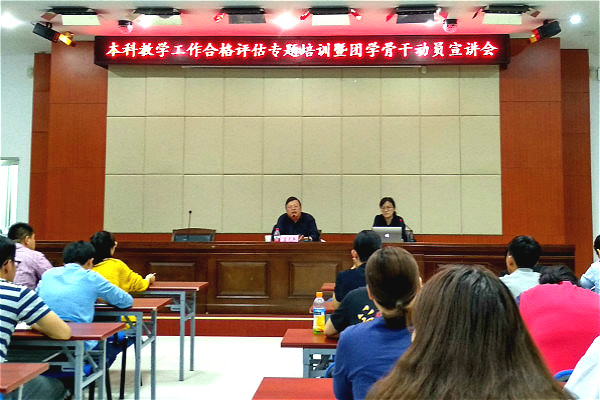为持续推进学校迎评创建工作进度,进一步明晰共青团工作在本科教学工作合格评估中的位置和角色,明确下一步工作打算和具体任务,我校于5月9日下午在七号公寓培训教室举办本科教学工作专题培训暨团学骨干动员宣讲会。山东政法学院团委副书记徐永青、我校教学质量监控与评估中心主任孟凡兵受邀为部分团干部、院校各级学生组织学生骨干进行专题培训,团委书记范红伟主持活动。