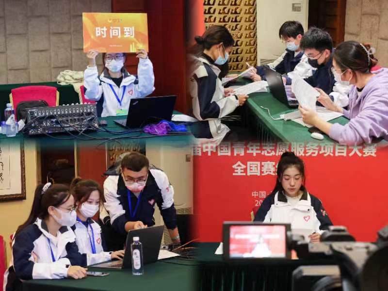 学校高度重视本次赛事服务工作,第一时间迅速反应,组织谋划,面向全校范围广泛招募,共计收到学生志愿者申请表200余份,结合疫情防控、岗位需求、志愿者政治素养、仪容仪表、志愿服务经历等条件制定选拔标准,坚持“优中选优”的原则,最终组建起一支由10名青年教师和88名大学生志愿者组成的志愿服务队。团队充分发挥专业优势,邀请专业督导老师为志愿服务团队开展基本素质培训,为志愿者赋能助力。为确保大赛志愿服务工作在疫情防控相关要求下顺利开展,团队在赛前进行多次演练,查缺补漏,志愿者们早上6点集合,点对点全流程闭环前往活动现场反复熟悉环境并进行专题培训和预演答辩。“政青春”志愿服务团的志愿者们每天工作时长超过10小时,协助评委完成13个领域的500个参赛团队的路演和答辩,出色完成本次大赛志愿服务各项任务。